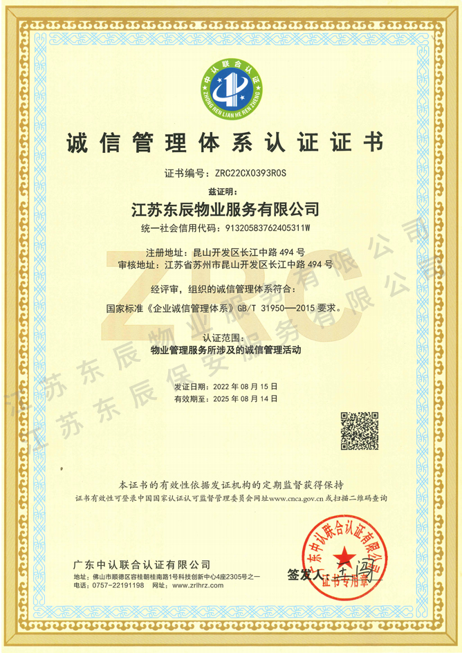 2022-2025年誠信管理體系認證證書